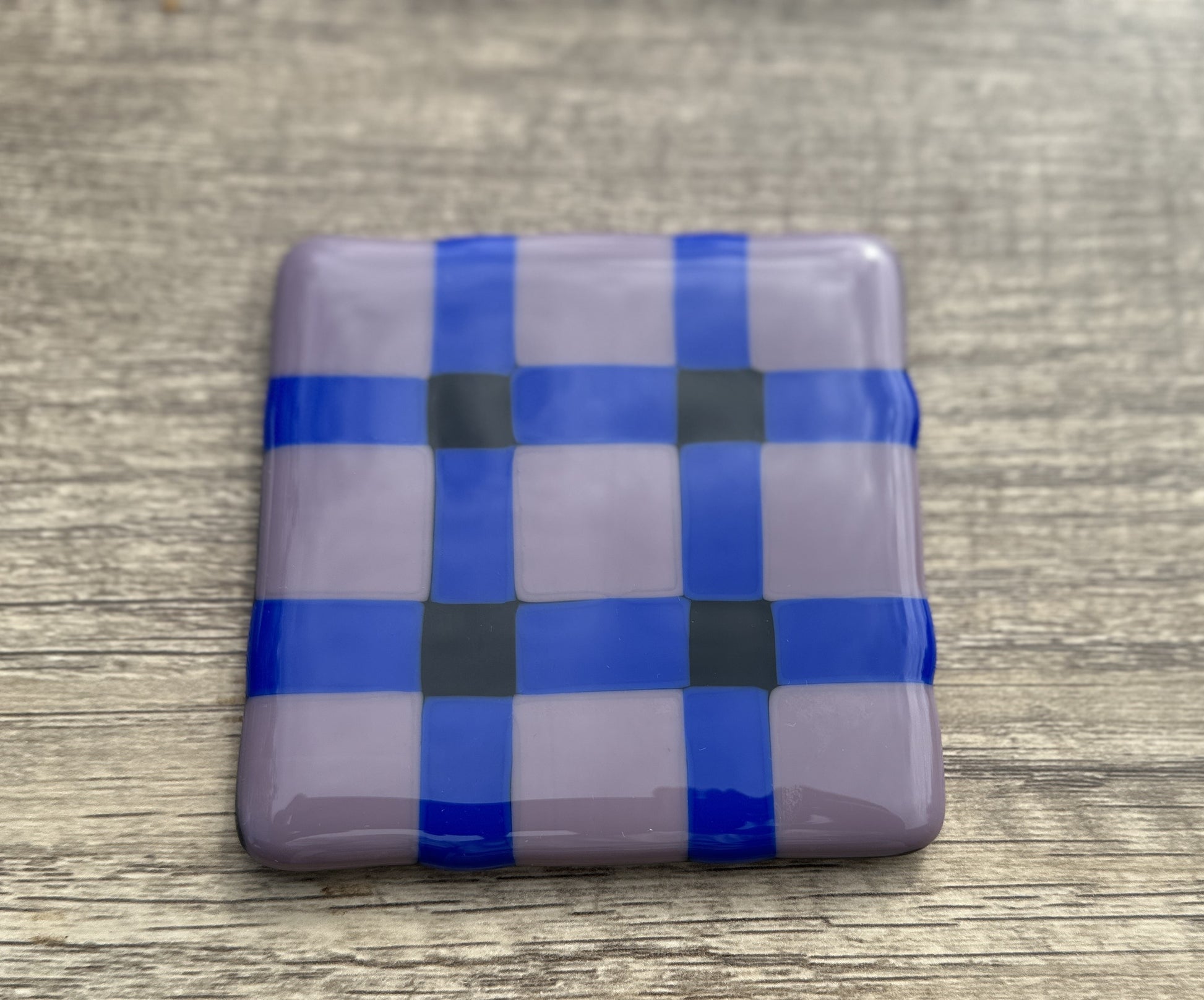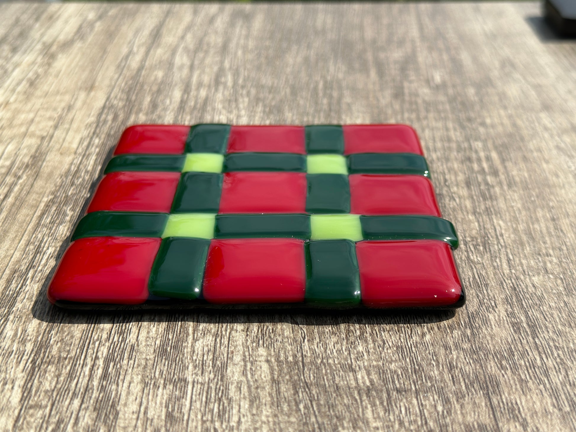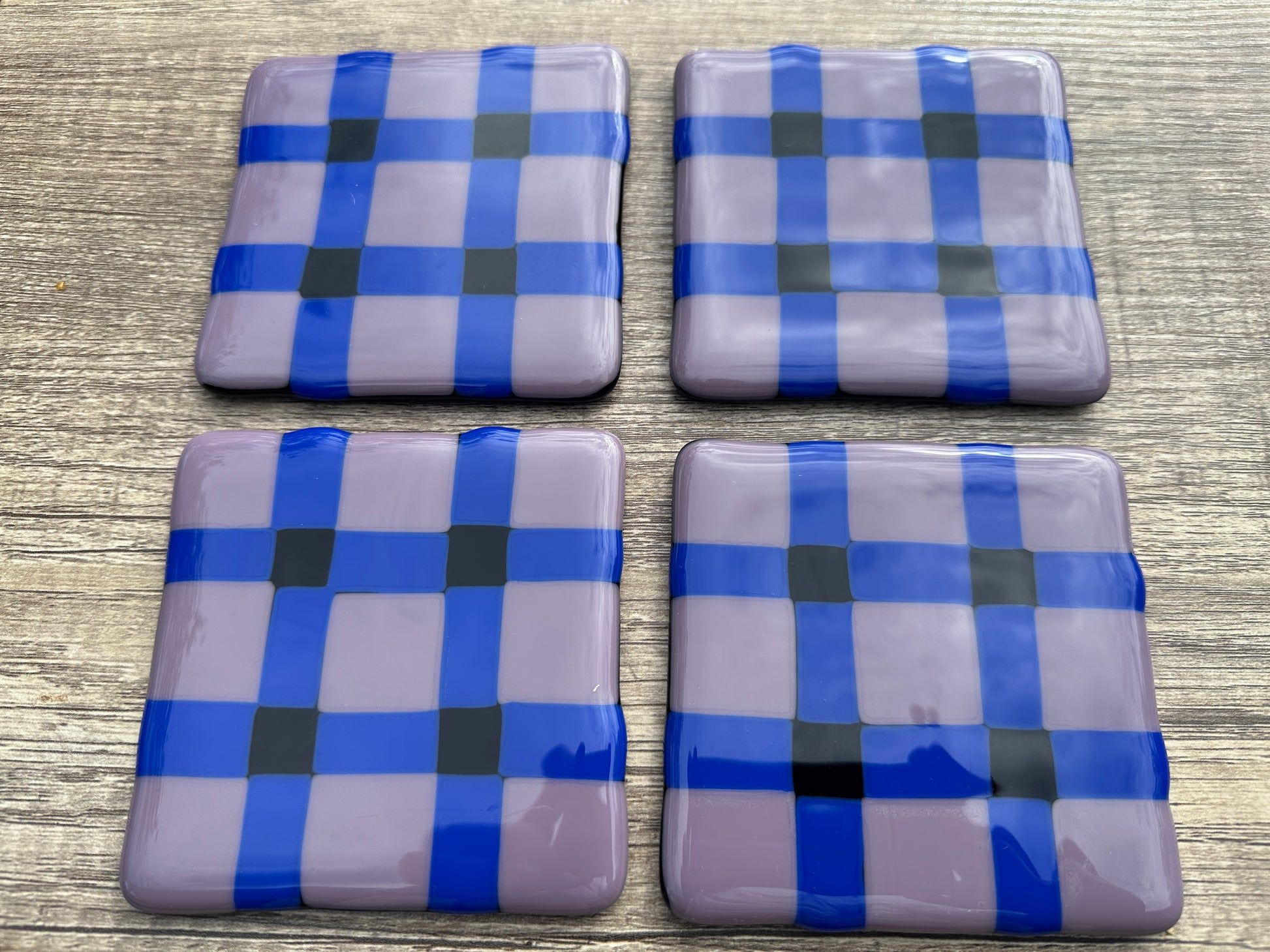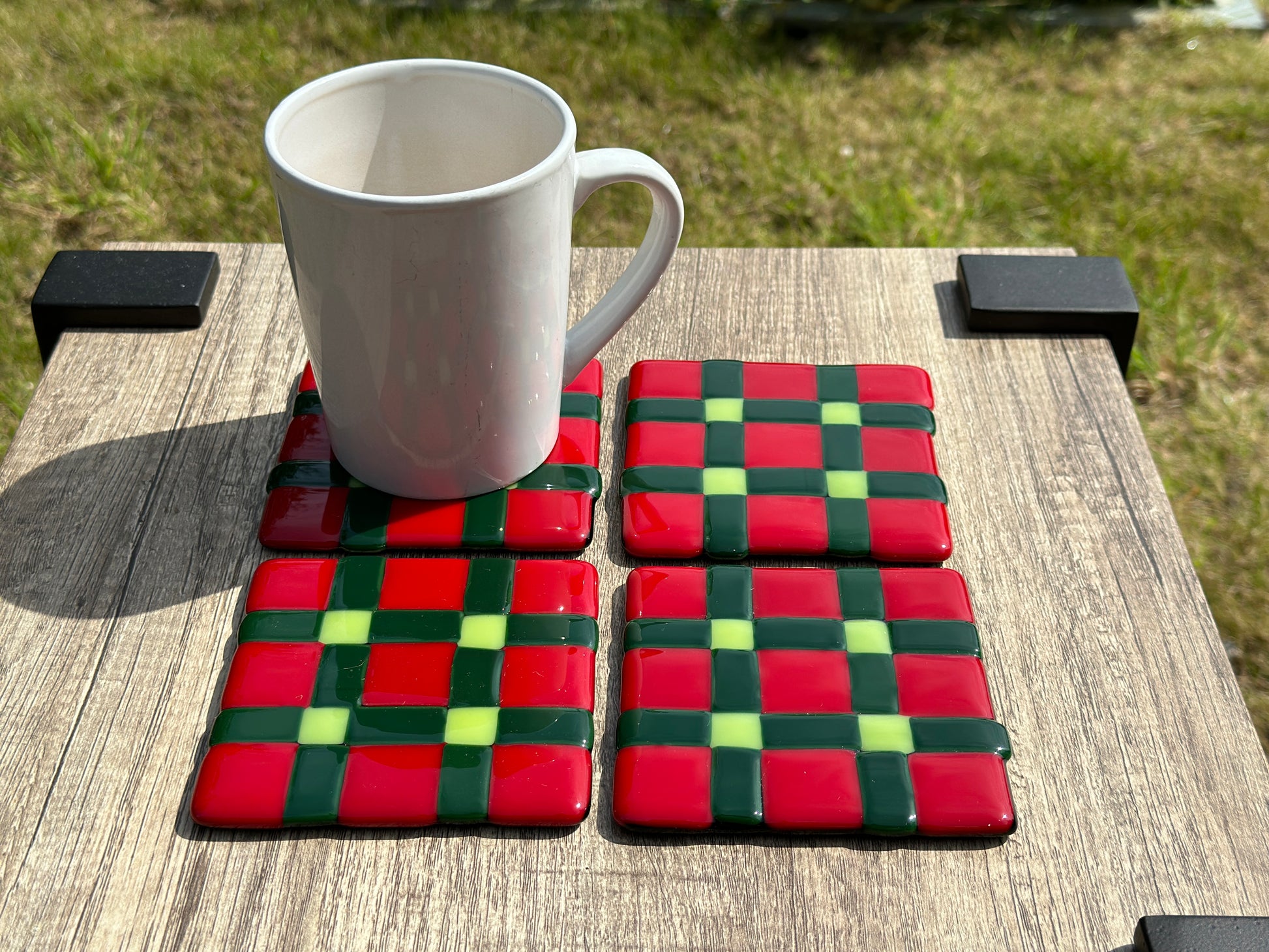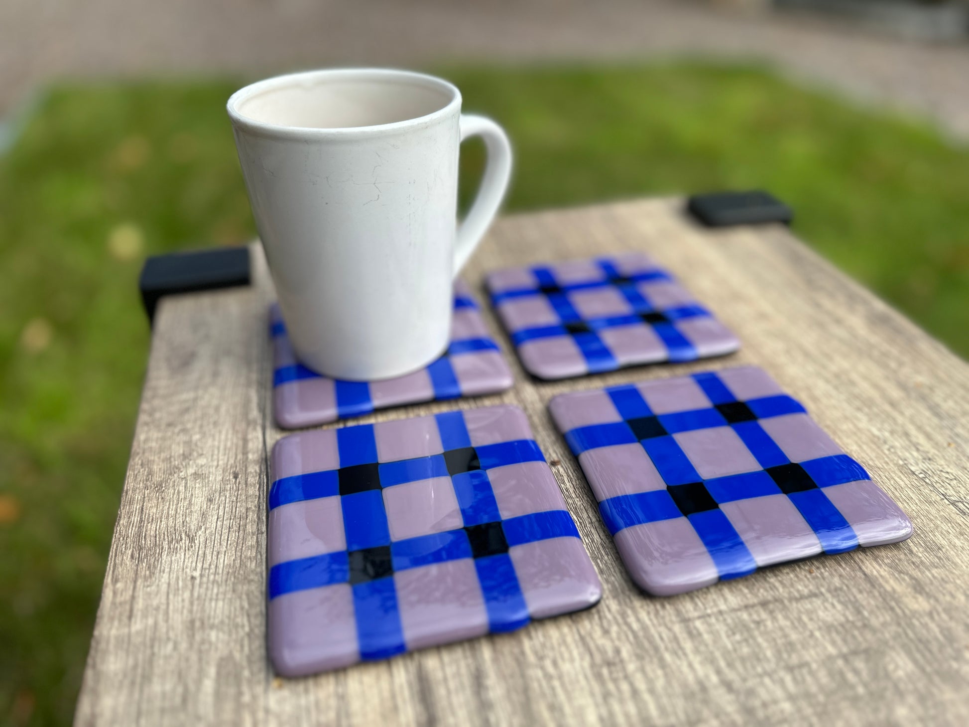 These Highland-themed Plaid coasters are created with layers of square pieces of glass in a simple plaid/tartan design.