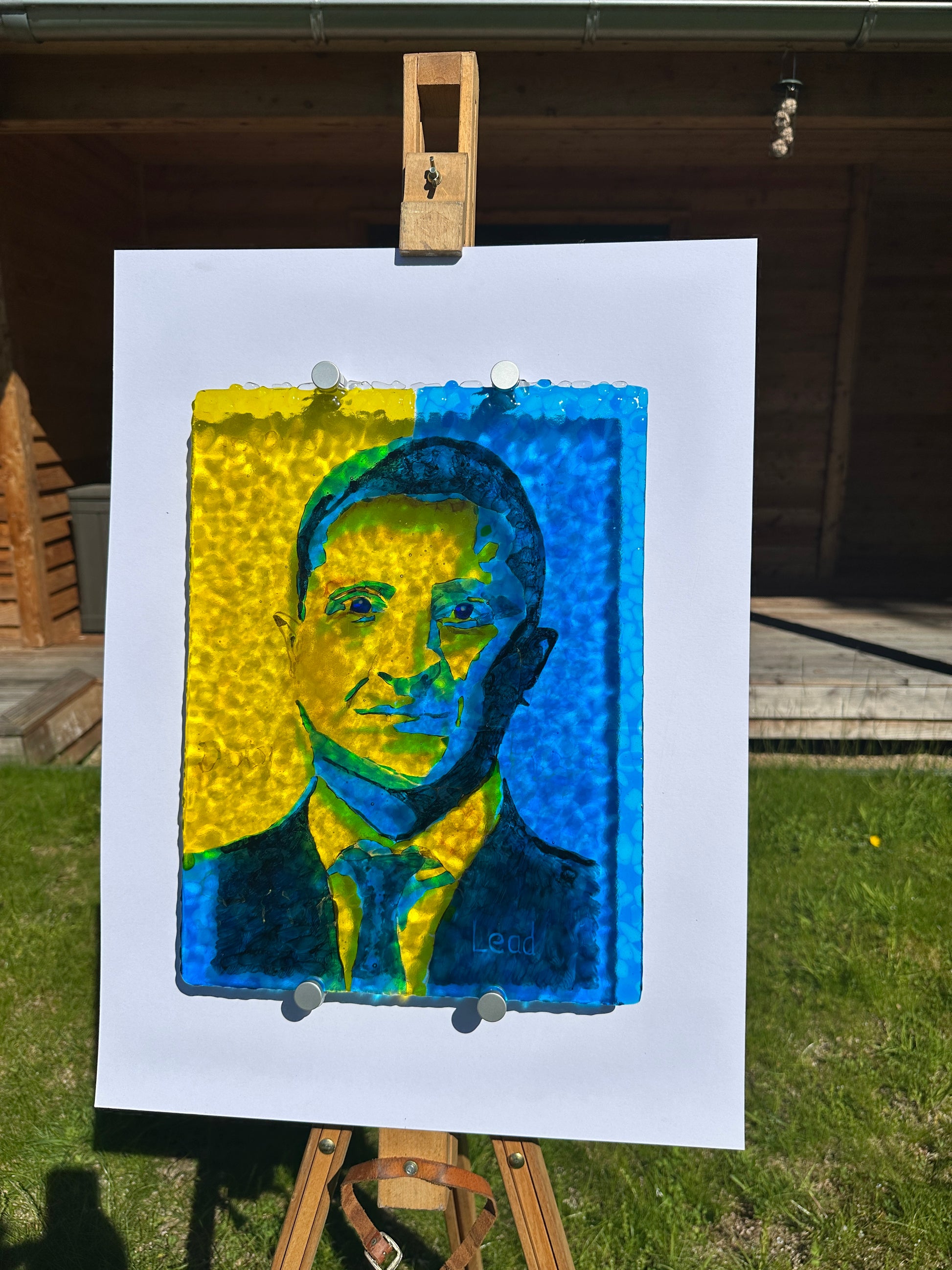 This Zelensky portrait forms part of a small collection highlighting qualities of leadership. This portrait is titled "Lead" and the word can be seen in the bottom right of the picture. I wanted to develop a series of portraits focused on aspects of leadership and those leaders who throughout their lives, both past and present, I feel consistently demonstrated those qualities. Zelensky reminds us everyday of his ability to not only lead his nation but also to inspire leadership in those who support him - David