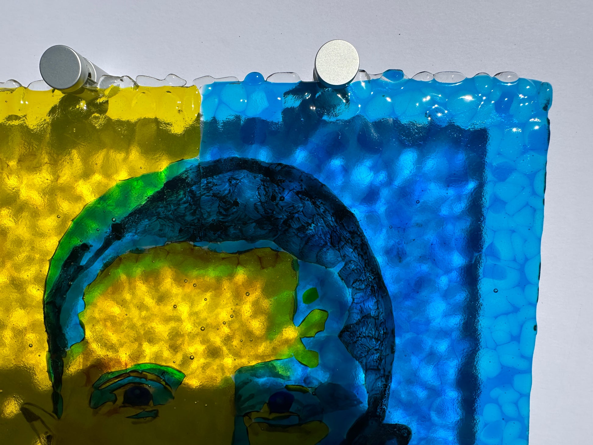 The portrait can be mounted on a wall with wall stand-off mounts (supplied), or you could have it framed, (note, we don't frame pieces or provide frames).