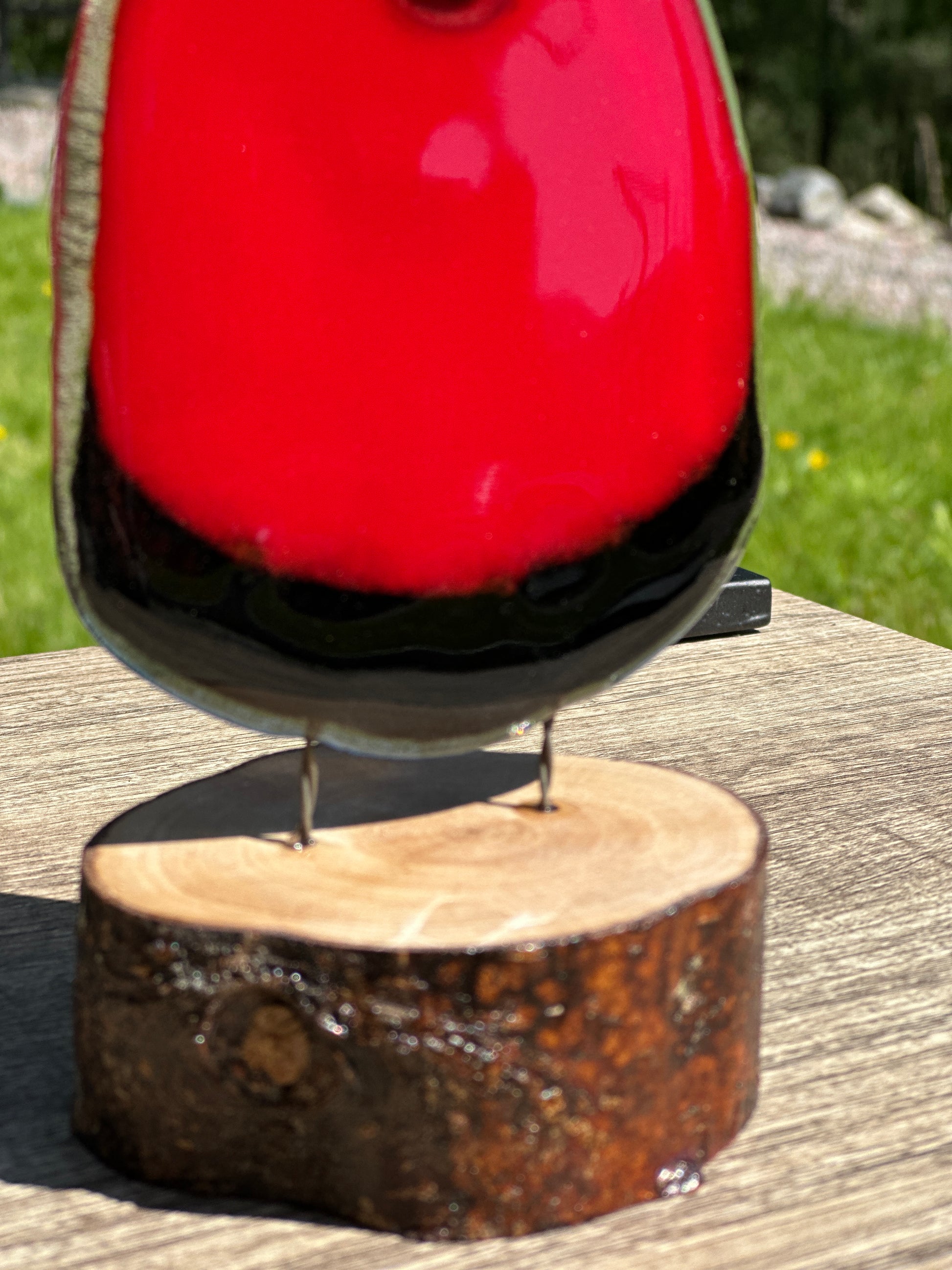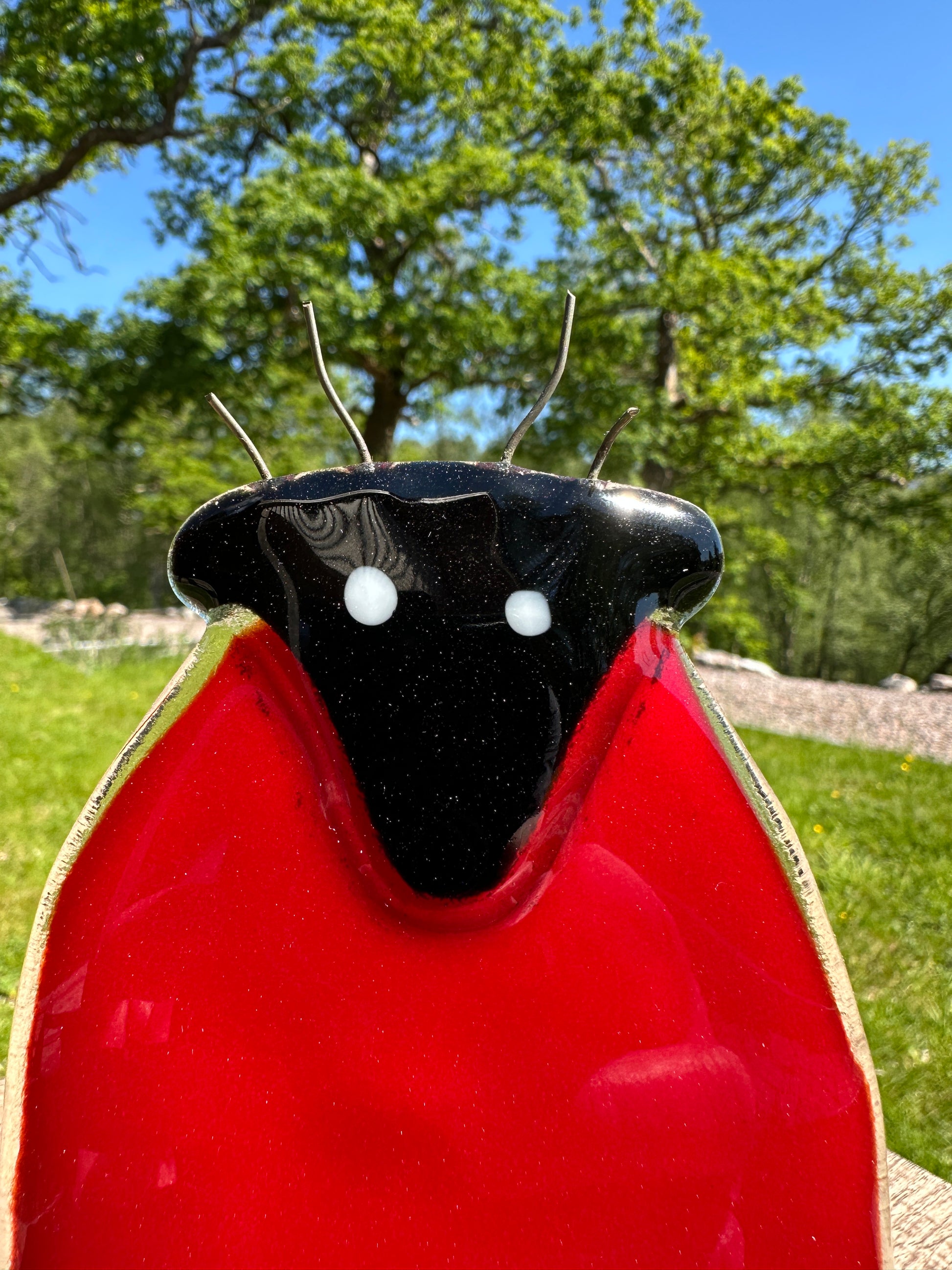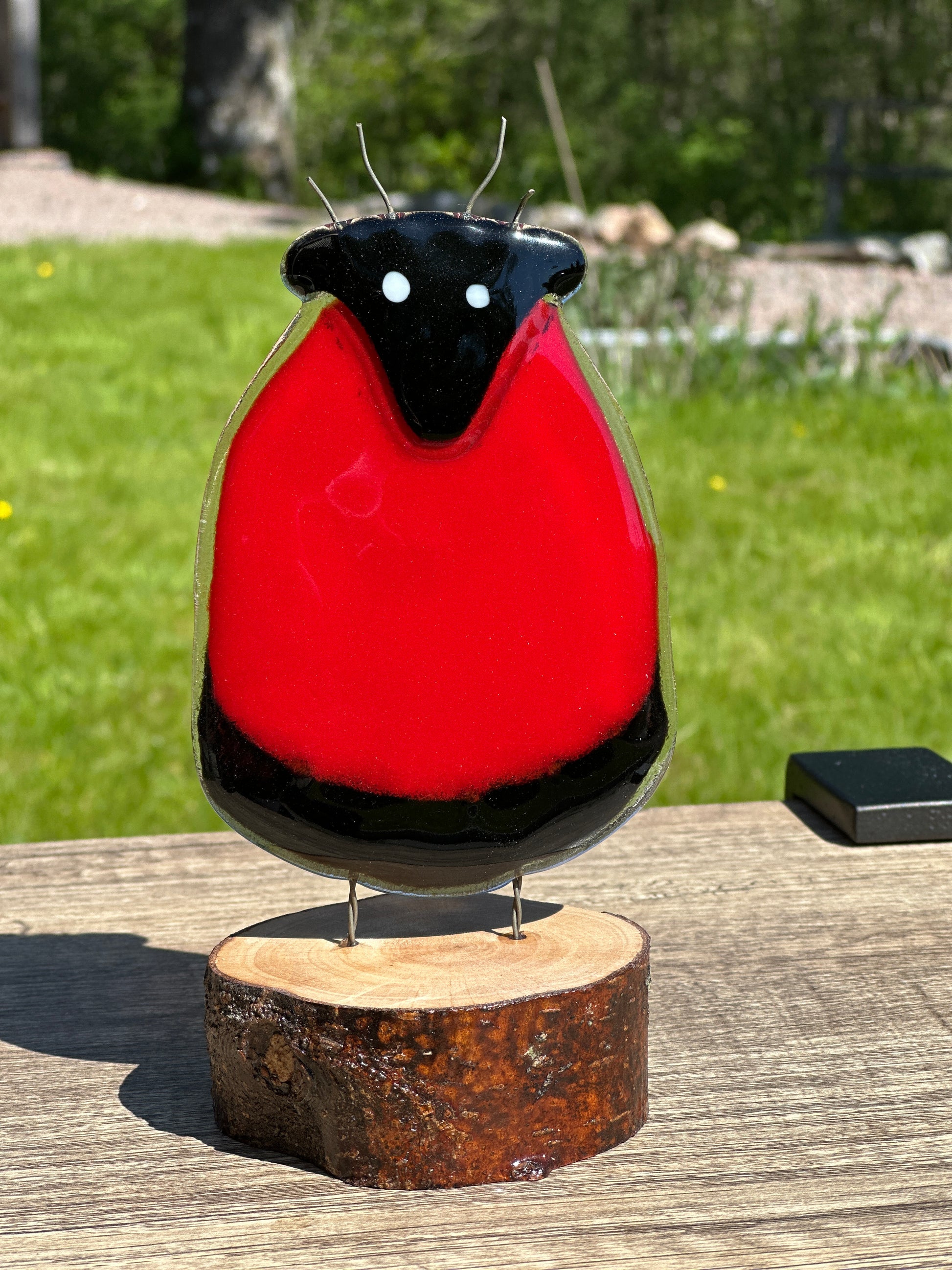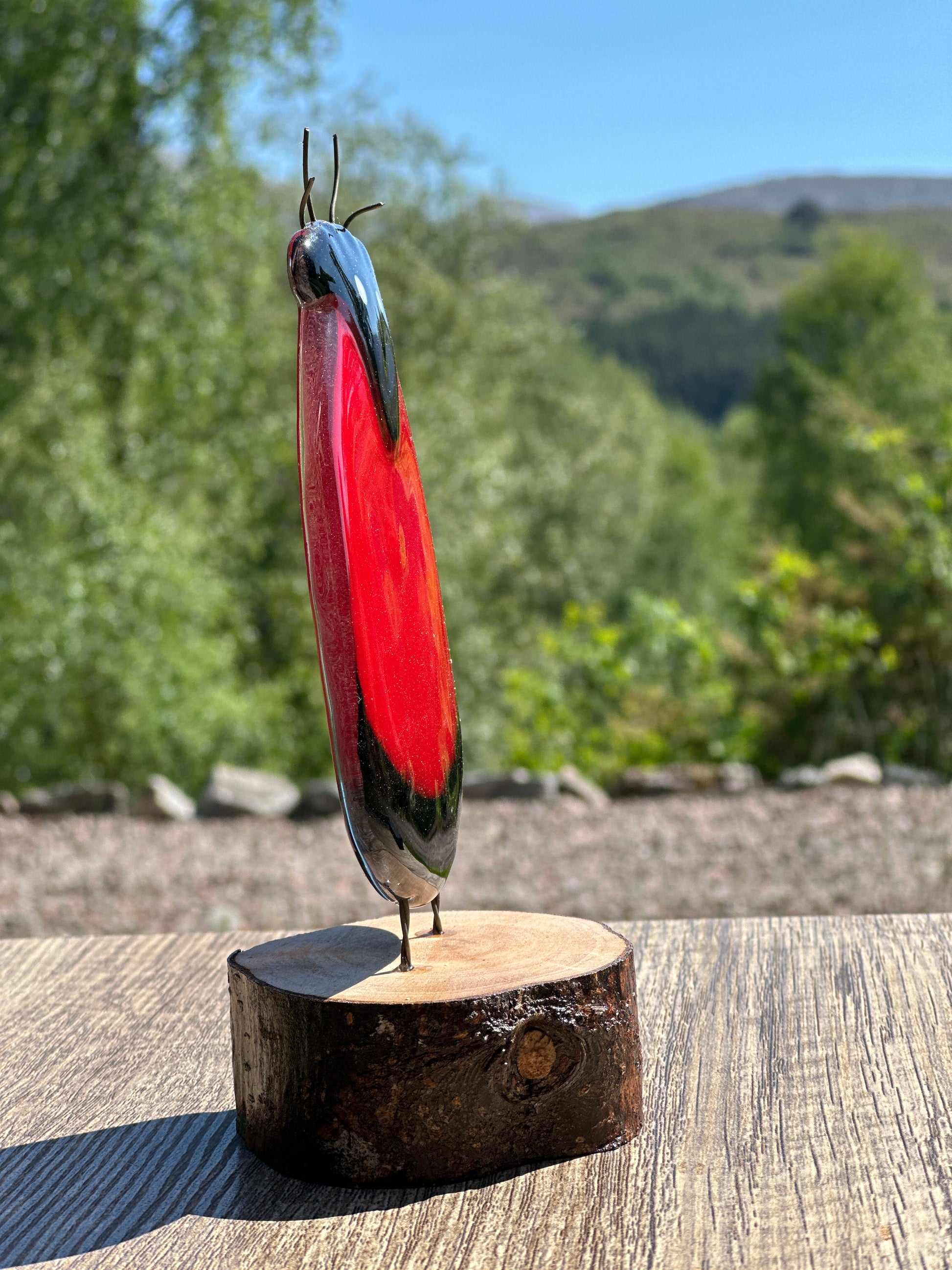 This Highland Sheep figurine brings a little cheeky humour into any room and is a fun reminder of any visit to Scotland. It is made from hand-cut pieces of clear sheet glass and coloured glass powder and stands on a wood base.