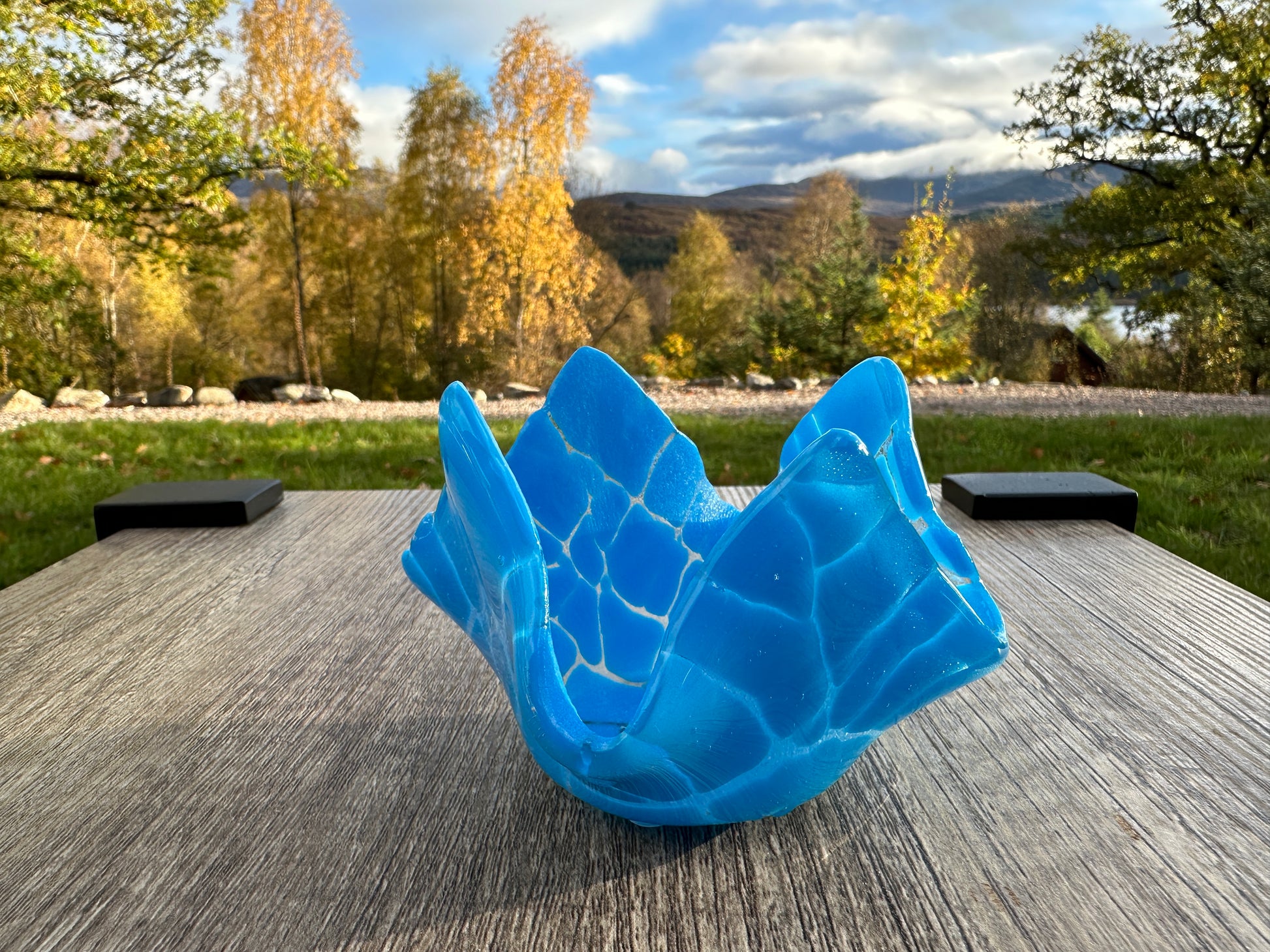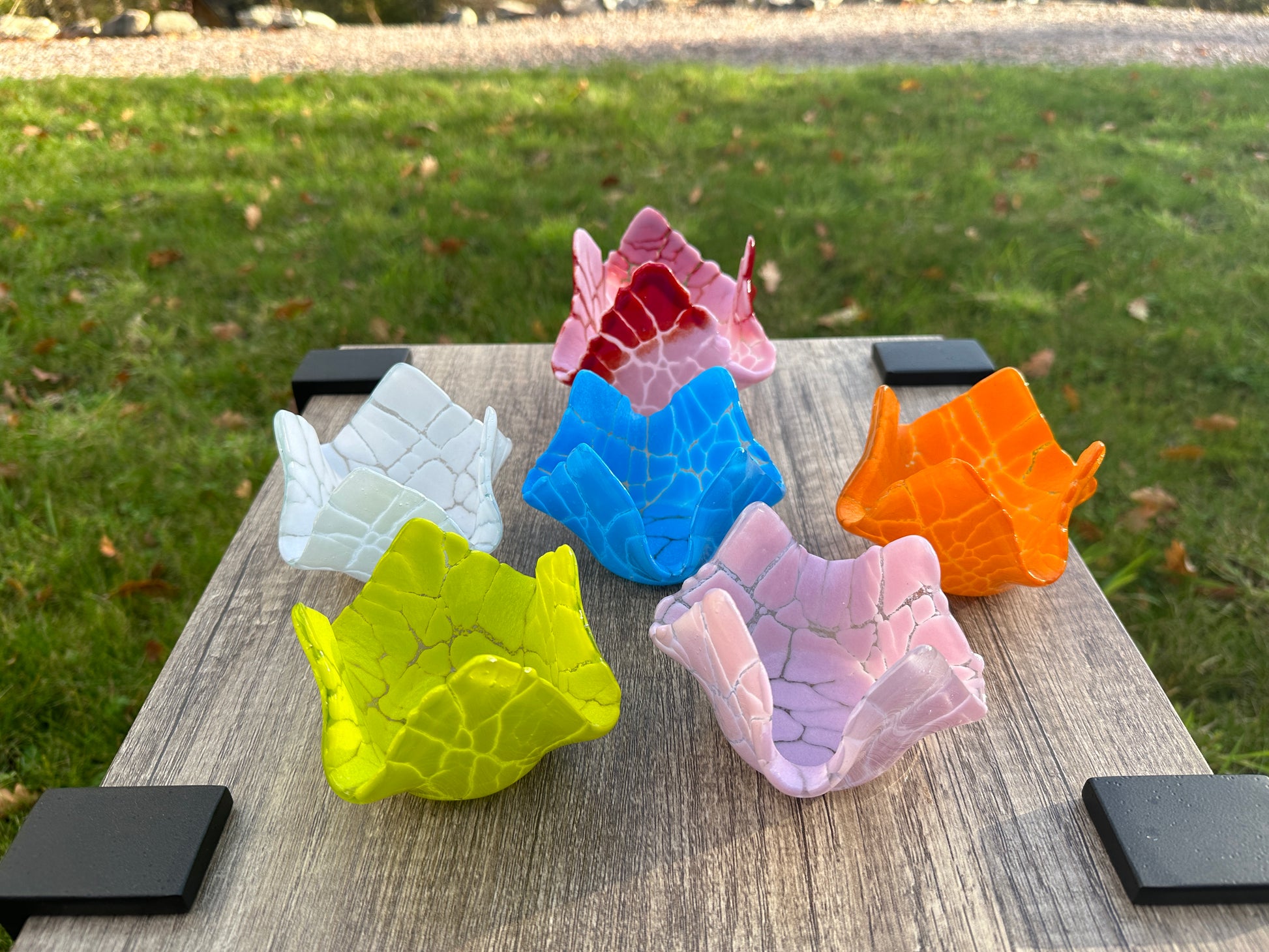 Add a warm and comforting glow to your favourite quiet place with these lovely crackle design votives. Measuring approx. 10cm x 5cm, they are perfect with a tea light or small candle. Made with clear glass and glass powder that is manipulated by hand to create the crackle effect. Each votive also has four protective bumps on the bottom to prevent slipping.